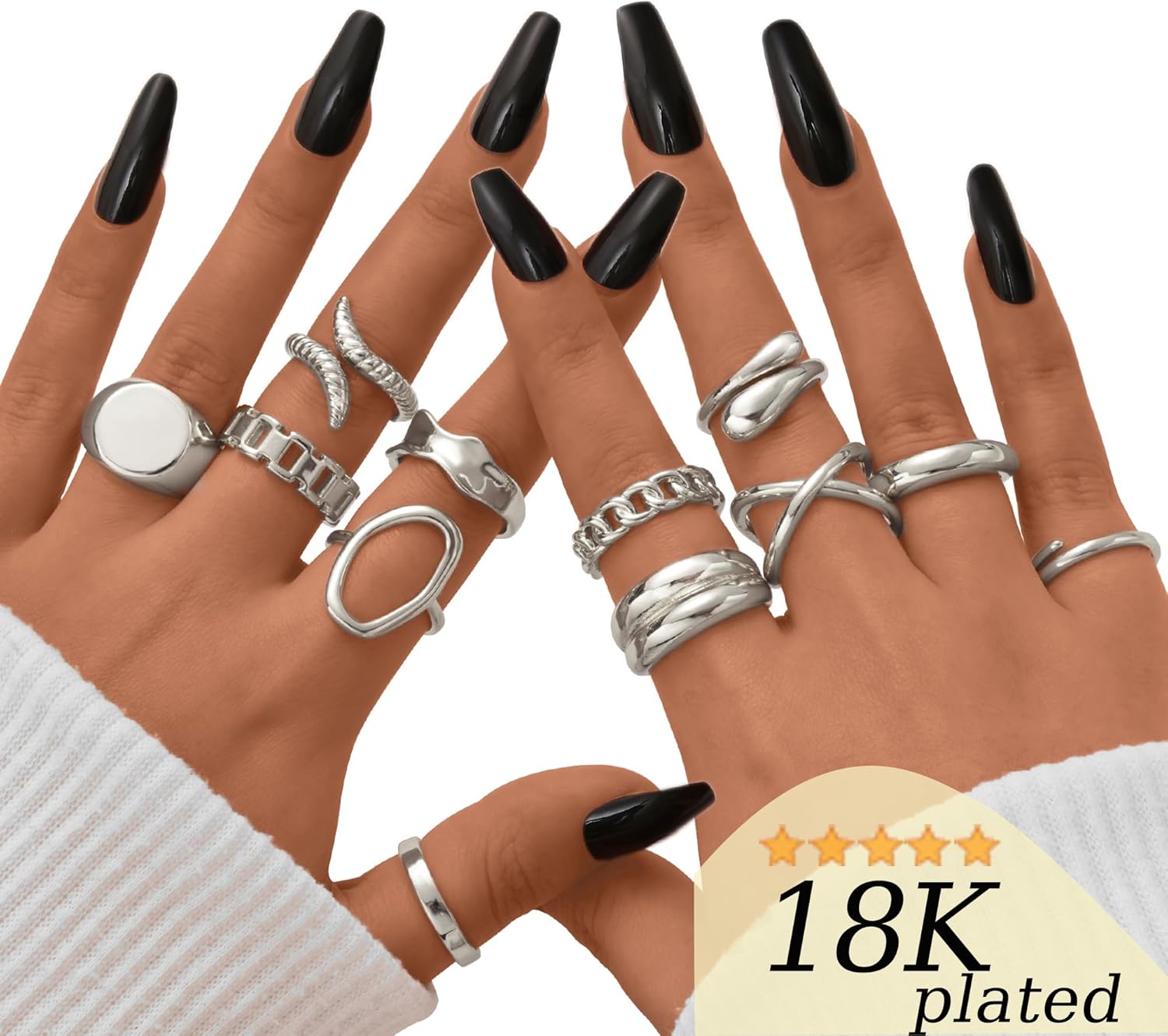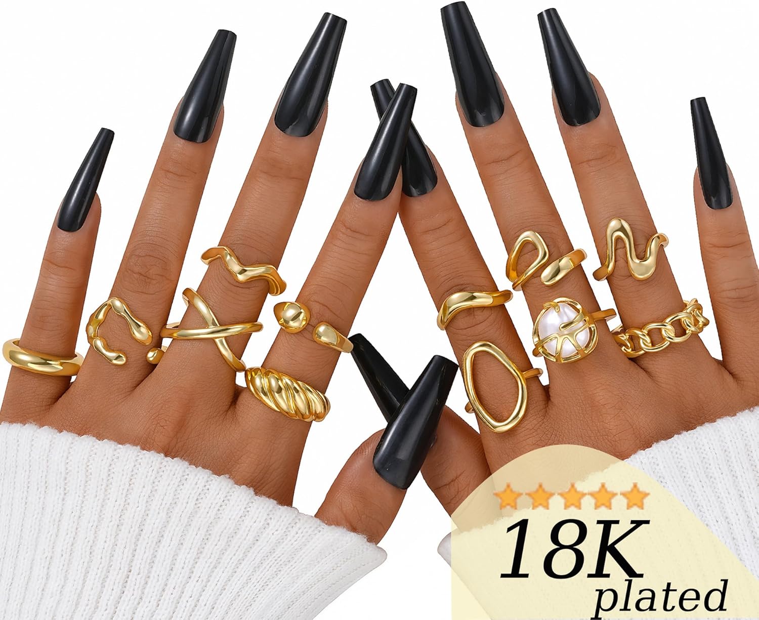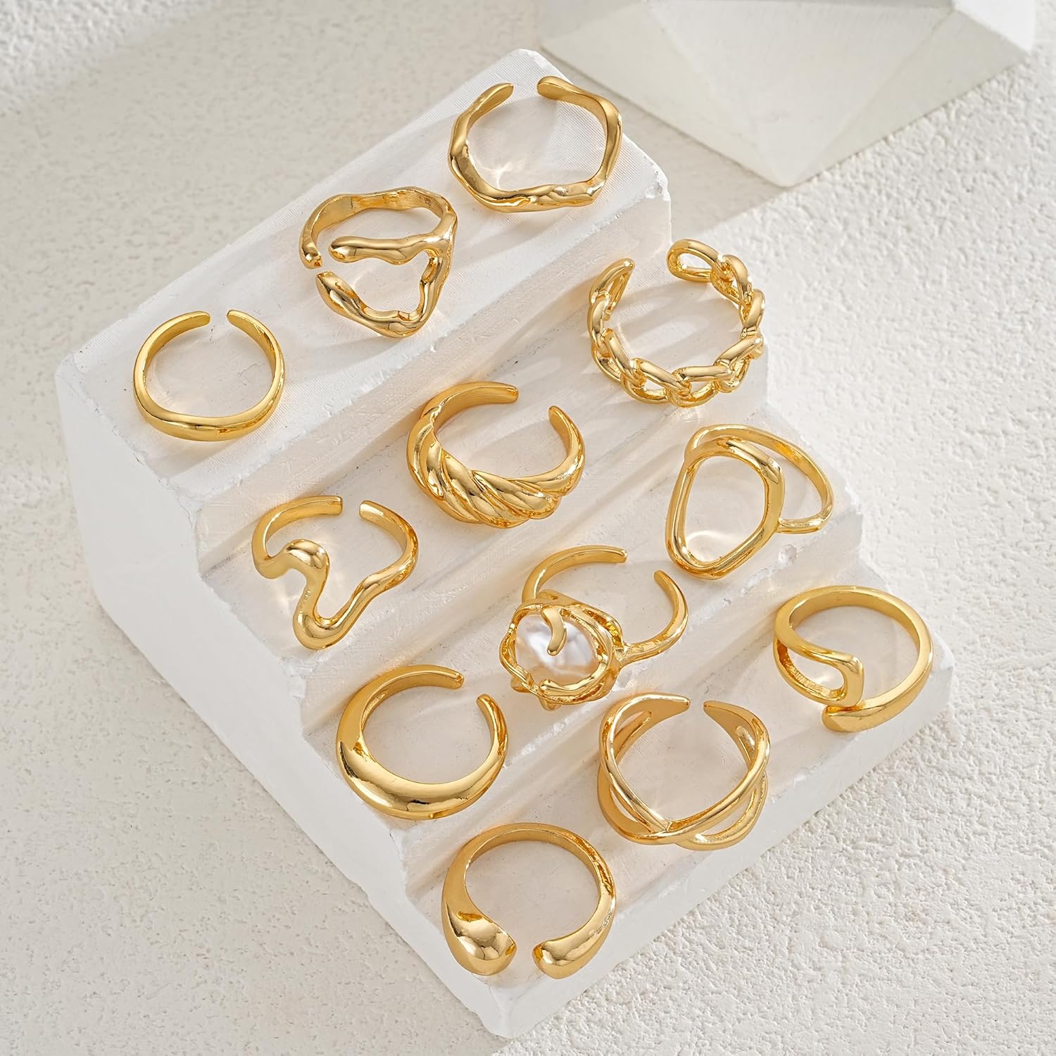 Elevate your accessory game with this Gold Stackable Rings Set for Women. Featuring a collection of dainty, minimalist rings, each piece is designed to be worn solo or stacked for a bold layered look. Crafted with 14K gold plating, these rings offer a timeless glow and are gentle on skin. Their adjustable open-back design ensures a comfortable fit on any finger great for everyday wear or special occasions. Whether you’re dressing up or keeping it casual, these stackable rings add effortless charm and elegance. Perfect for gifting or treating yourself!