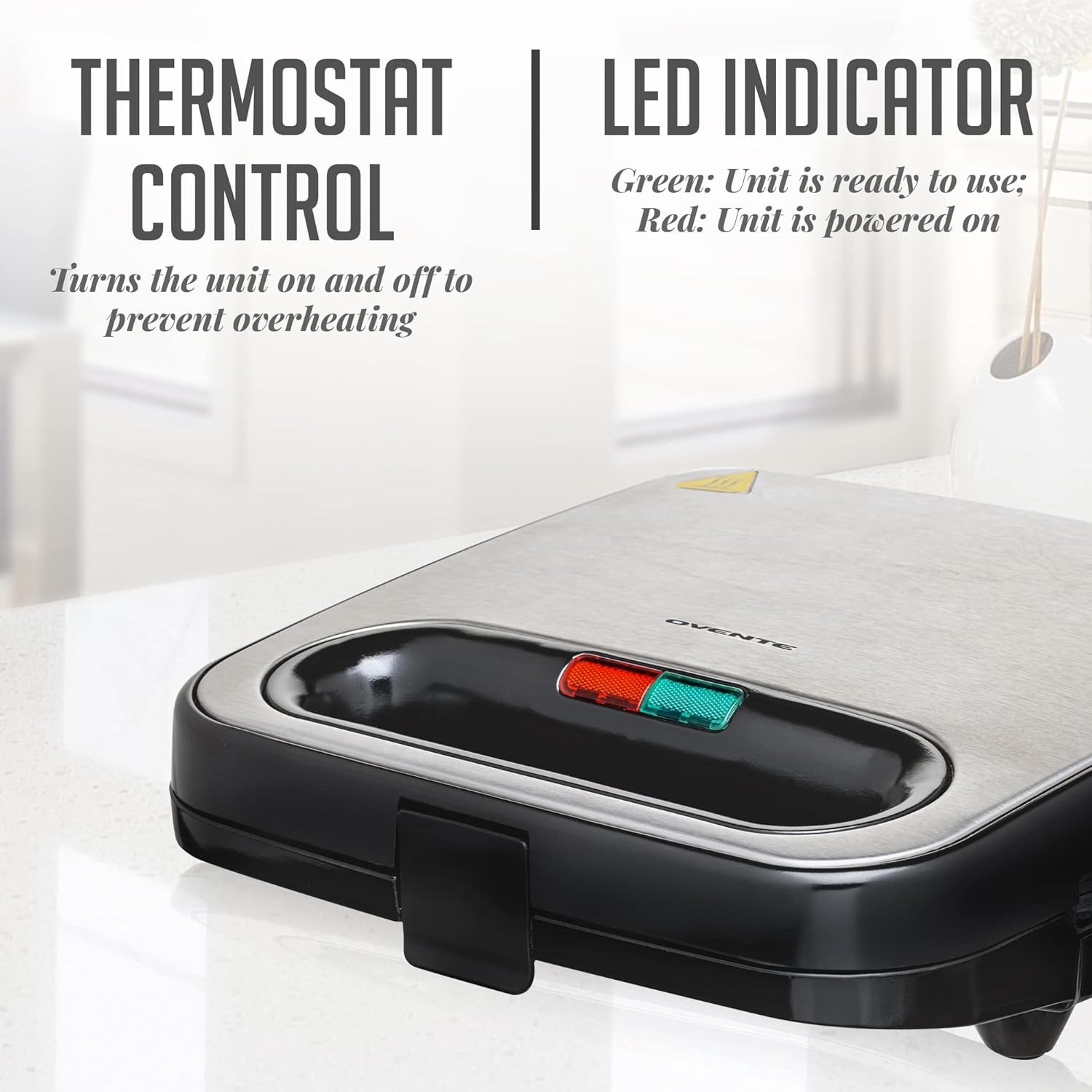 Make delicious sandwiches, grilled cheese, and quick snacks with ease using the OVENTE Electric Sandwich Maker. Featuring non-stick cooking plates, indicator lights, and a cool-touch handle, this compact appliance is easy to use, clean, and store—perfect for breakfast and anytime cravings.